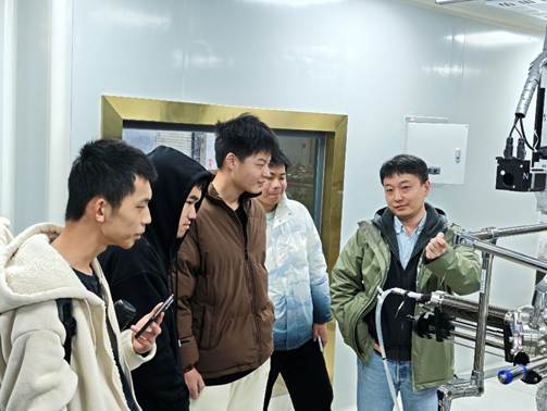最后,丁浩老师带领同学们参观学校量子材料与器件研究中心,结合量子材料研究链条,围绕量子材料的计算预测、材料生长制备与物性测试等环节作介绍,帮助同学们对“理论—制备—表征”协同研究路径形成整体认识。